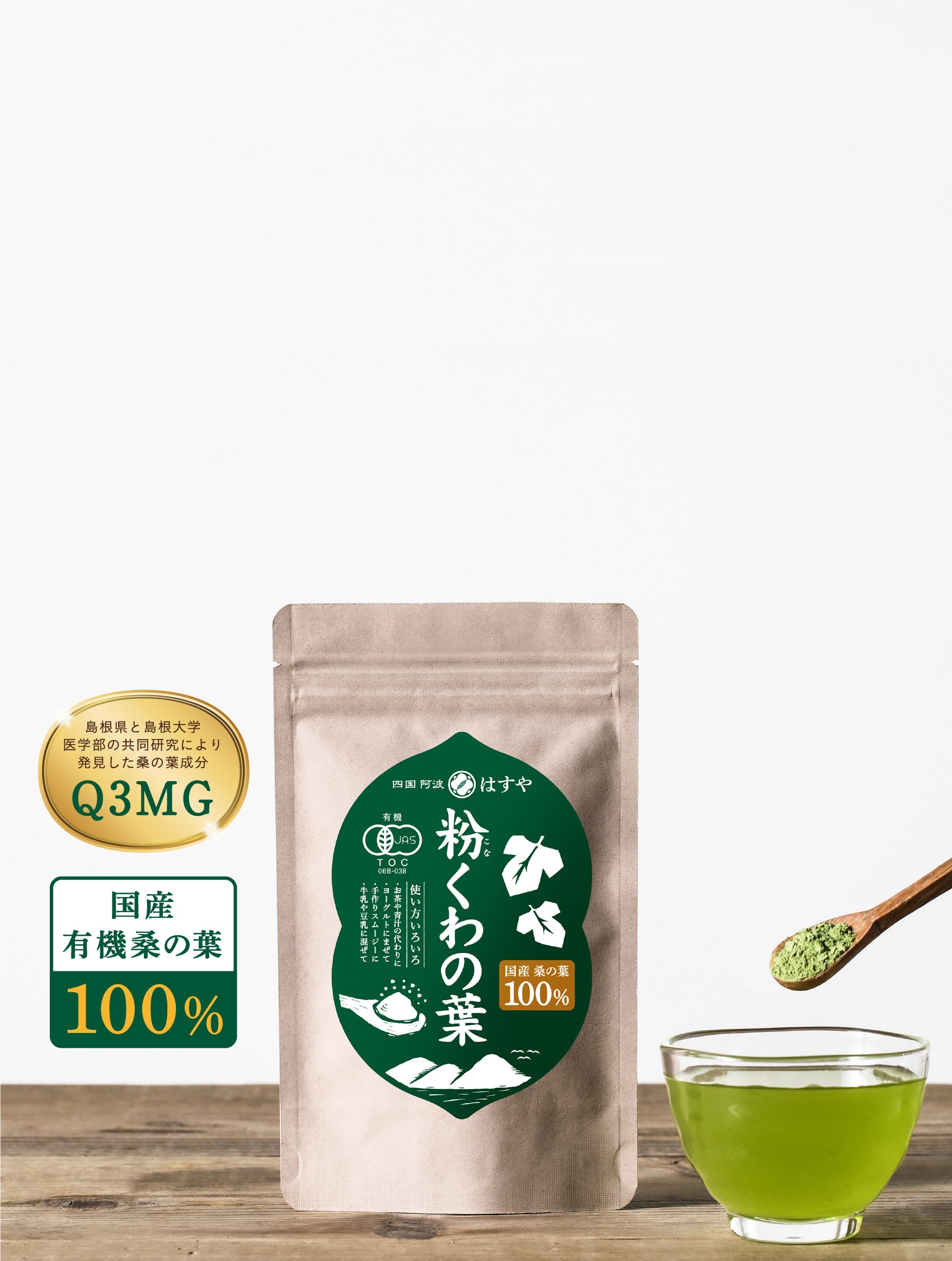 島根県と島根大学医学部の共同研究により、糖をおだやかにするフラボノイドの一種「Q3MG」の存在は学会で発表されており、特に、島根県産の桑の葉には豊富に含まれています。また、桑の葉は、古くから健康のために用いられ、マルベリーというスーパーフードとしても人気があるため、海外でも人気の高いお茶です。
