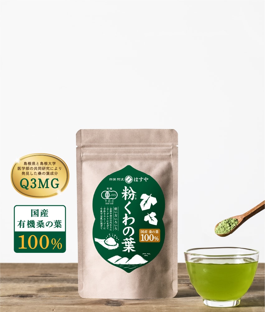 お子さんからご年配の方まで、すべての方に安心して飲んでいただけるように、島根県産の有機栽培桑の葉は、農薬や化学肥料には頼らず、余計なものも加えていません。とても栄養価が高く、濃い栄養をまるごと食べることができます。少し高いと思われるかもしれませんが、健康のために取り入れていただきたいものだから、とことん安心安全なものにこだわっています。